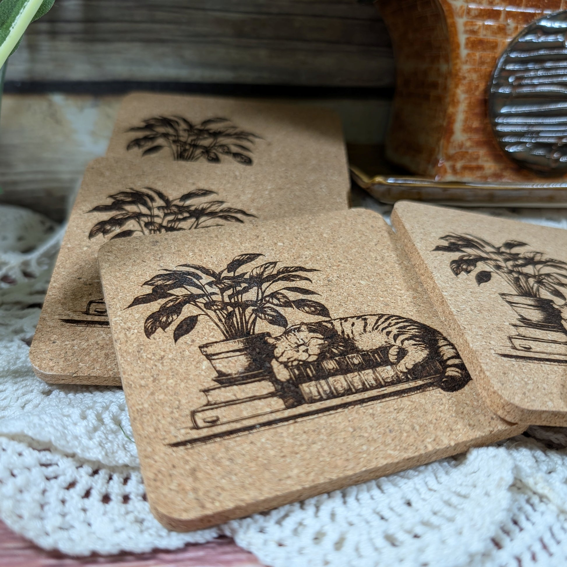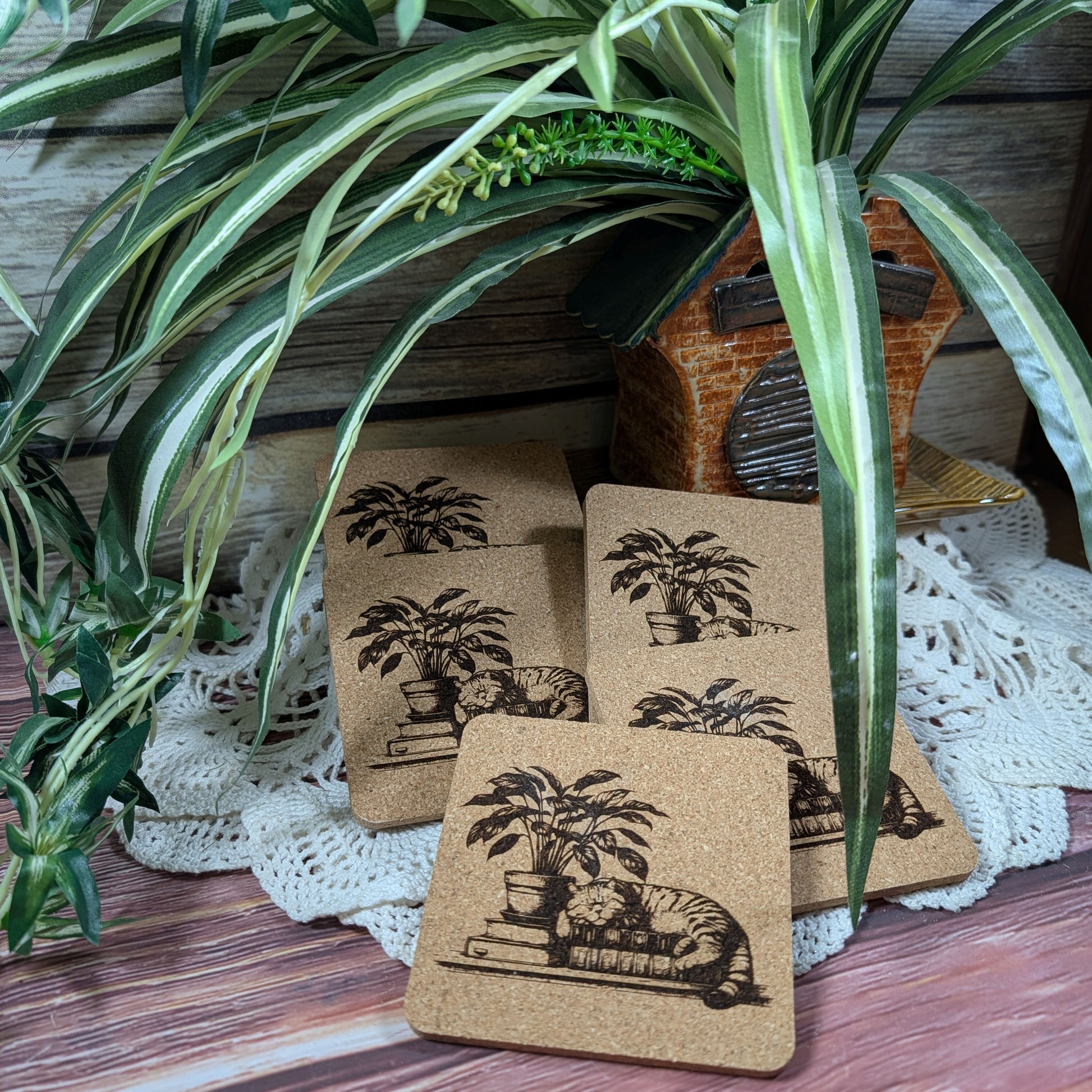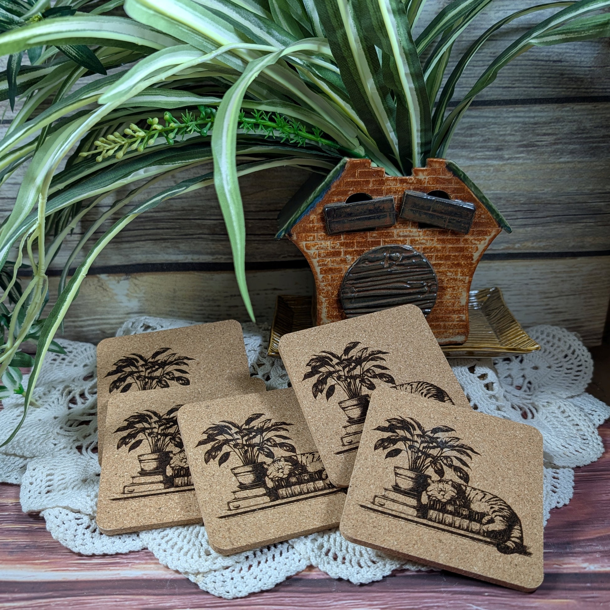 Cats. Books. Need I say more? OK, how about a cat, on a book, on a coaster, ready for your favorite drink on your little side table next to your comfortable chair?