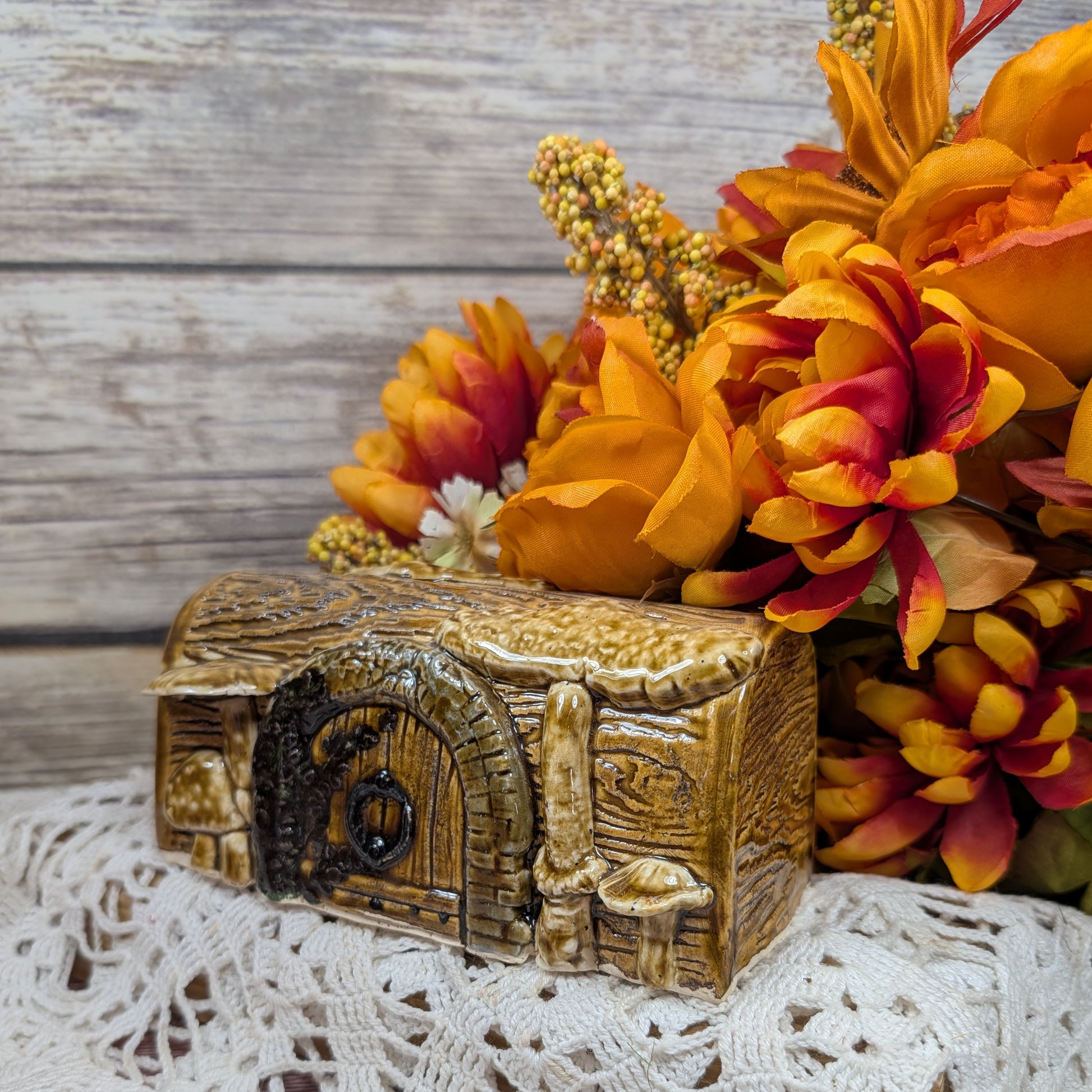 Each one of these is made by hand, and as such, will vary in door style used and mushrooms/tiny animals. The one photographed will always be the available one, however.